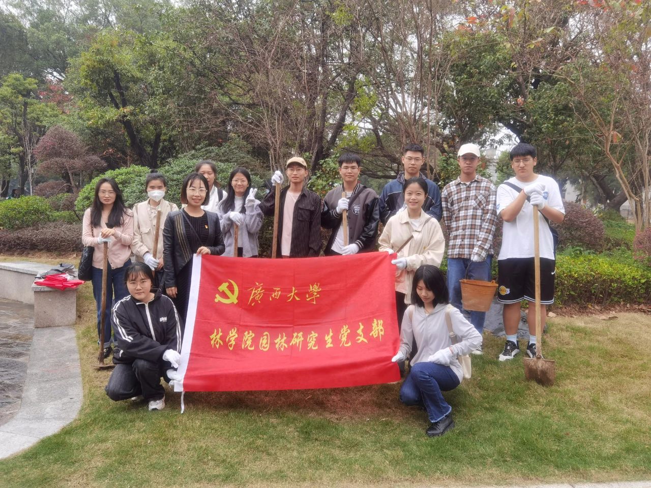 春风送暖,百卉含英,为深入学习贯彻党的二十大精神,以实际行动弘扬雷锋精神,在第45个植树节来临之际,3月12日下午,beats365(中国区)-唯一官方网站林学院园林研究生党员来到西校园公共绿地,与其他学院代表一道,开展“校园党旗红,养护生态绿”树木养护志愿服务活动。