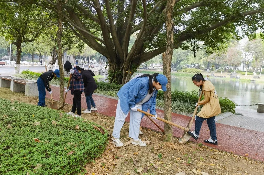 在学校后勤基建处、博世科物业服务中心绿化技术人员的指导下,师生们两三人一组,三五人一群,纷纷挽起衣袖,拿起锄头、扛起铁铲、提起水桶,齐心协力,默契配合,认真完成除草、松土、施肥、填土、浇水等工序。虽然天空中飘着细雨,但现场处处都是忙碌的身影和劳动的欢声笑语。经过师生们的共同努力,整片绿地愈发整洁美观,焕发出盎然生机。