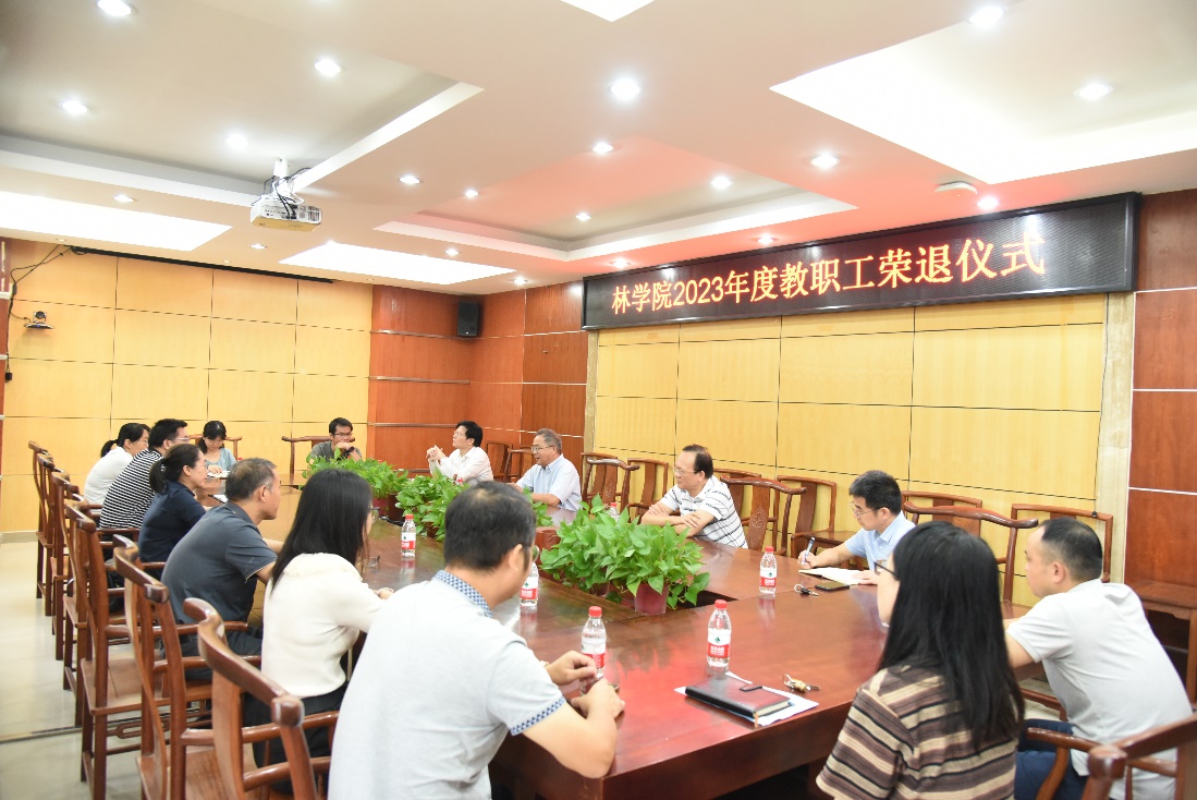10月27日,我院2023年度教职工荣退仪式在219会议室举行。仪式由院党委书记符韵林主持,常务副院长叶绍明、党委副书记徐丽、副院长梁俊波、招礼军及青年教师代表参加活动。
