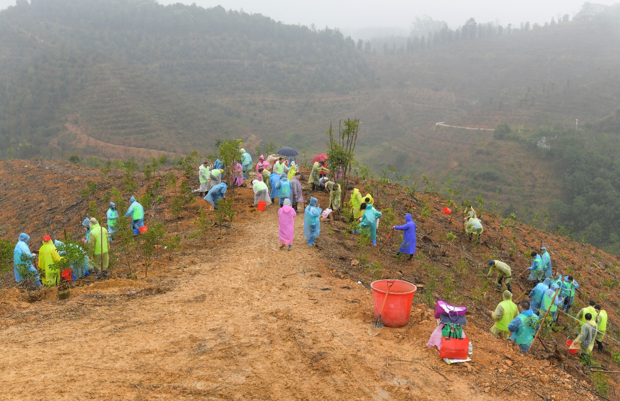 绵绵细雨中,泥泞山坡上,青年志愿者们齐心协力,挥汗如雨,共种下沉香树230多棵。挥锹挖坑、扶正树苗、培实新土、拎桶浇灌……每道工序大家都做得一丝不苟,经过一番热火朝天的栽种,一棵棵新植的树苗,迎风挺立,生机勃勃。植树后,大家将廉洁卡片挂在沉香树上,一起许下做好“清廉林业人”的铮铮誓言。