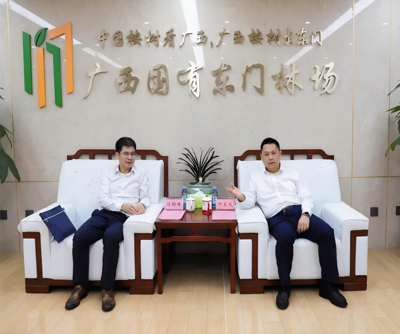 座谈会上,叶家义详细介绍了东门林场的发展历程及未来规划。符韵林重点介绍了我院发展概况、学科优势和服务地方经济的基本情况,对下一步双方如何结合学院优势和林场实际,为东门林场的发展提供智力支持提出了具体建议。随后,双方就校场产学研合作、人才培养等内容进行洽谈。双方表示,将进一步强化校场合作,深化产学研融合,促进合作共赢,共同搭建全区林业人才培养平台,助力生态文明建设,持续为全区林业产业高质量发展提供强有力的人才保障。