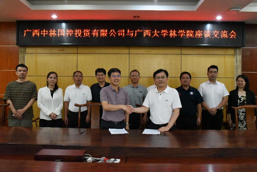 据悉,广西中林国控投资有限公司由中国林场集团有限公司和广西国控林业股份投资有限公司共同出资设立,主营业务为国家储备林基地建设。日前,该公司与beats365(中国区)-唯一官方网站签订产学研合作框架协议,共同就科研项目合作、人才培养与交流、科技成果转化及产业示范基地建设等内容开展合作。