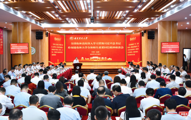 10月20日,全国农林高校深入学习贯彻习近平总书记给涉农高校重要回信精神座谈会在福建农林大学召开。国家林草局副局长李金华、农业农村部科技司副司长杨如,以及全国51所农林高校和科研院所等代表与会。我校原副校长冯家勋教授率队参会并作交流发言,我院尤业明副院长代表学院陪同参会。