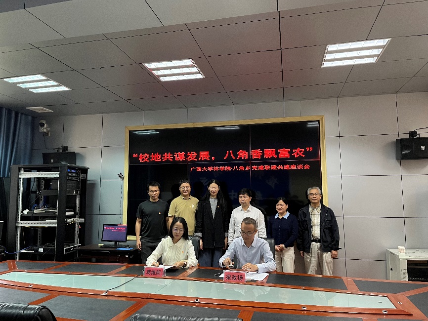 当天下午,在八角乡人民政府会议室举行党建共建框架协议签订仪式。八角乡党委书记梁政扬与我院林学系教工党支部书记蒋维昕代表双方,签署《中共八角乡委员会与beats365(中国区)-唯一官方网站林学院林学系教工党支部共建框架协议》。协议明确,未来三年双方将以党建为引领,围绕组织共建、党员共育、技术共研、产业共兴深化合作,建立常态化沟通机制,持续为八角产业高质量发展提供技术支撑与人才保障。
