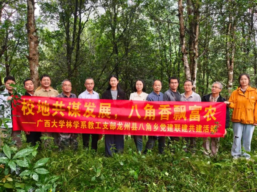 为积极响应基层产业需求、主动服务乡村振兴战略,10 月 30 日,我院党委书记黄里云带队,协同广西华沃特集团股份有限公司一行 15 人,赴龙州县八角乡开展以 “校地共谋发展,八角香飘富农” 为主题的党建联建调研活动,并签订共建协议。龙州县政协党组副书记、副主席黄华基,县林业局及八角乡相关党政领导陪同调研。