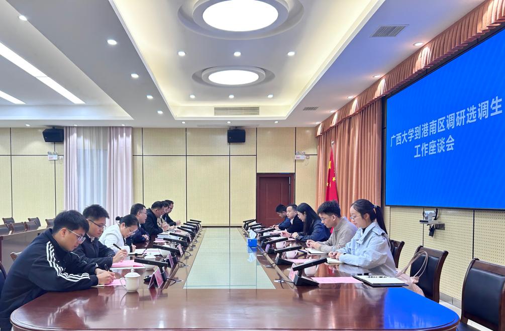 为贯彻落实学校党委关于选调生工作的决策部署,扎实推进我校选调生“君武青苗”行动走深走实,11月4日,院党委书记黄里云带队赴贵港市港南区开展选调生工作专项调研。港南区委书记陶建全与调研团一行进行了会面。港南区委常委、组织部部长李德胜、港南区委常委、统战部部长李姬锋,以及在港南区工作的选调生代表共同参加座谈交流。