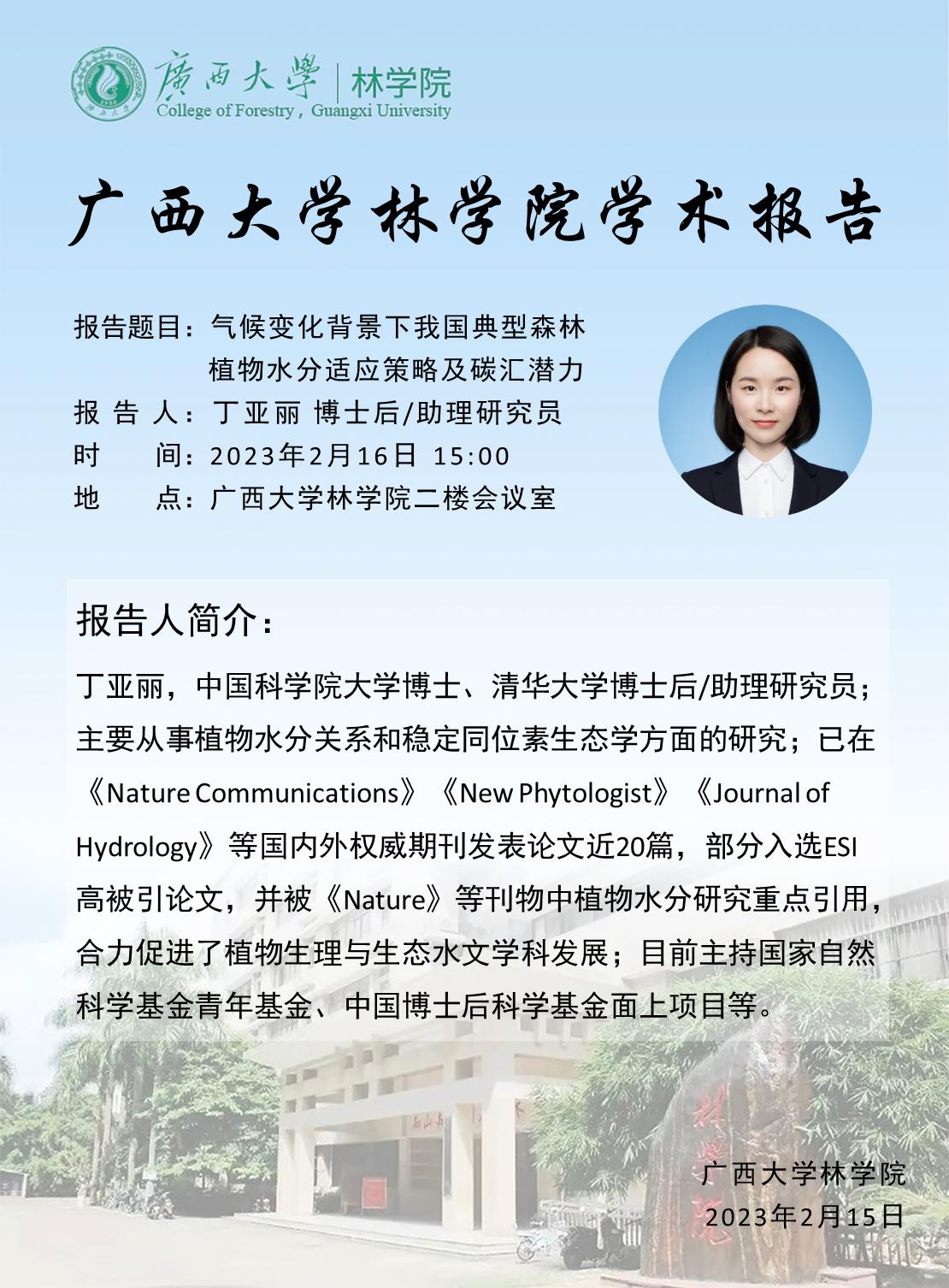 学术报告:气候变化背景下我国典型森林植物水分适应策略及碳汇潜力