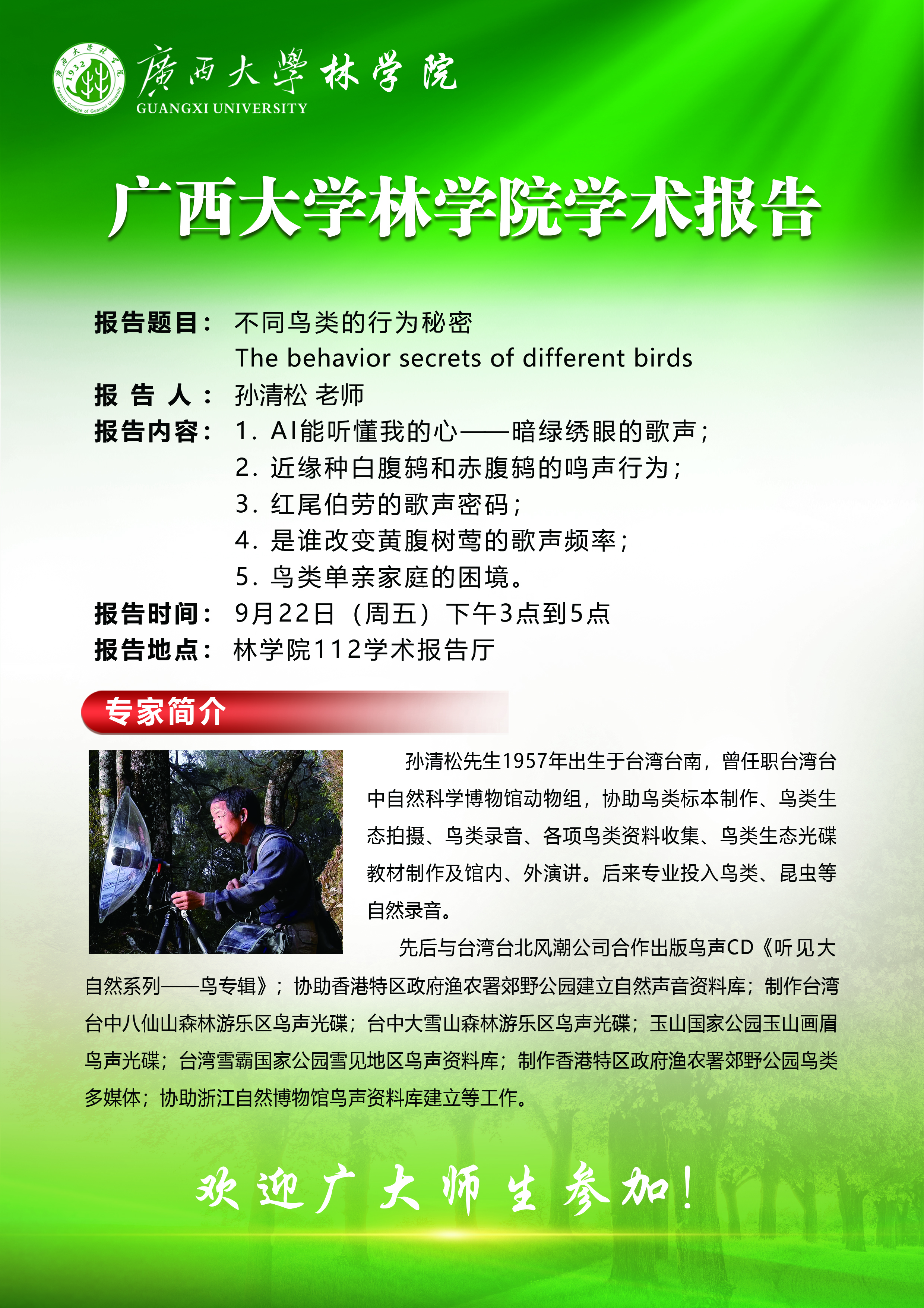 学术报告:不同鸟类的行为秘密