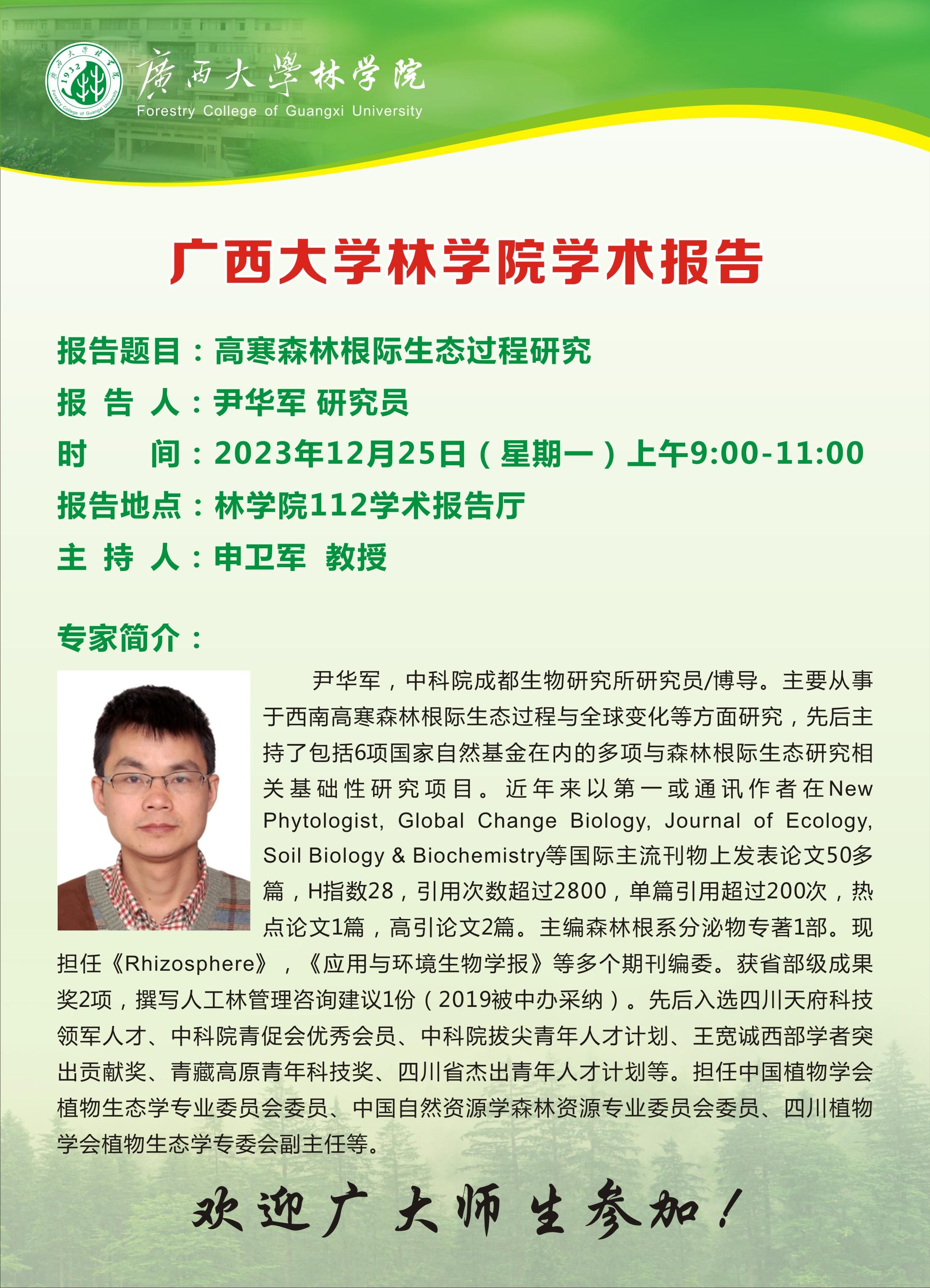 学术报告:高寒森林根际生态过程研究
