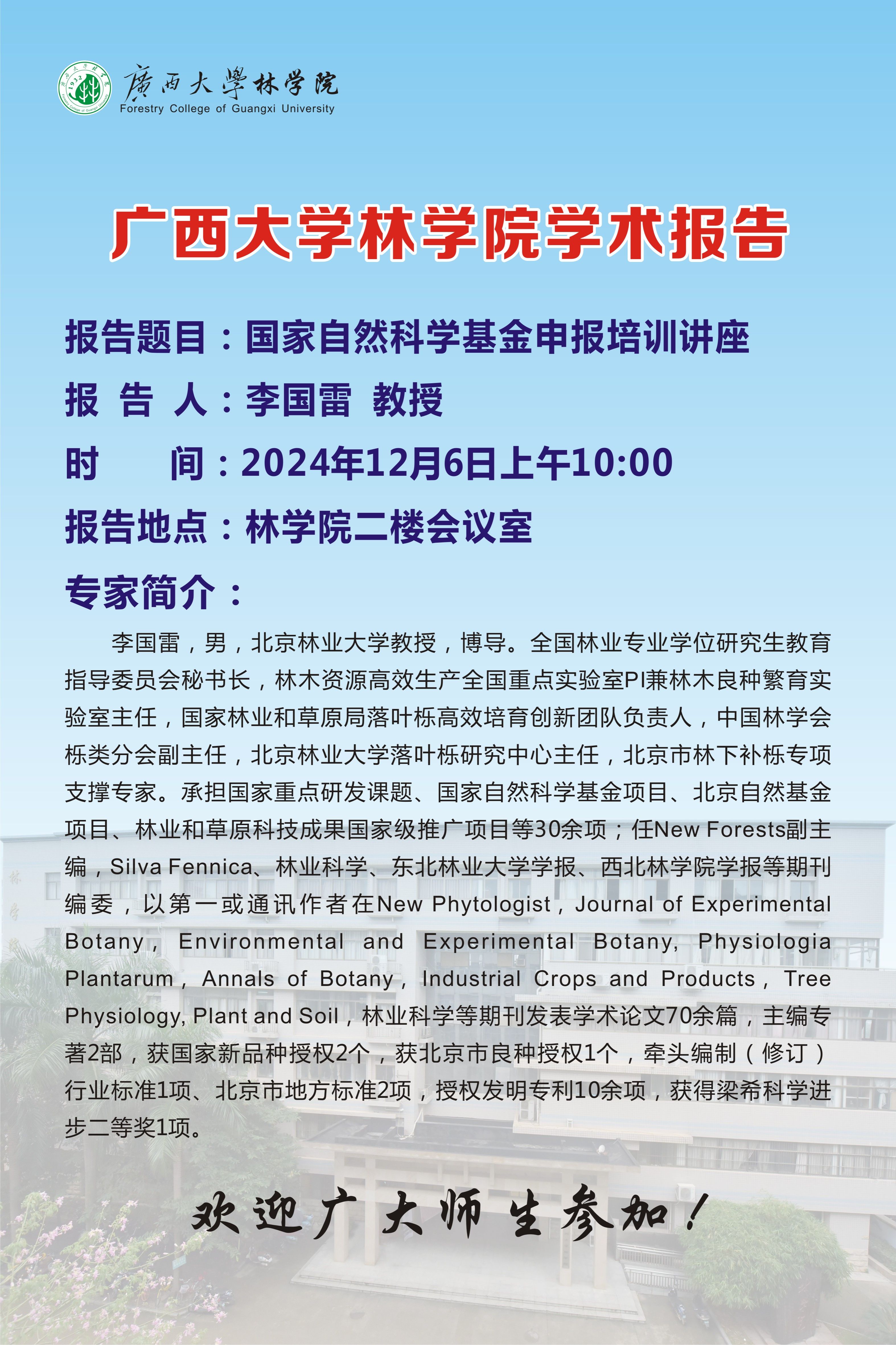 学术报告:国家自然科学基金申报培训讲座