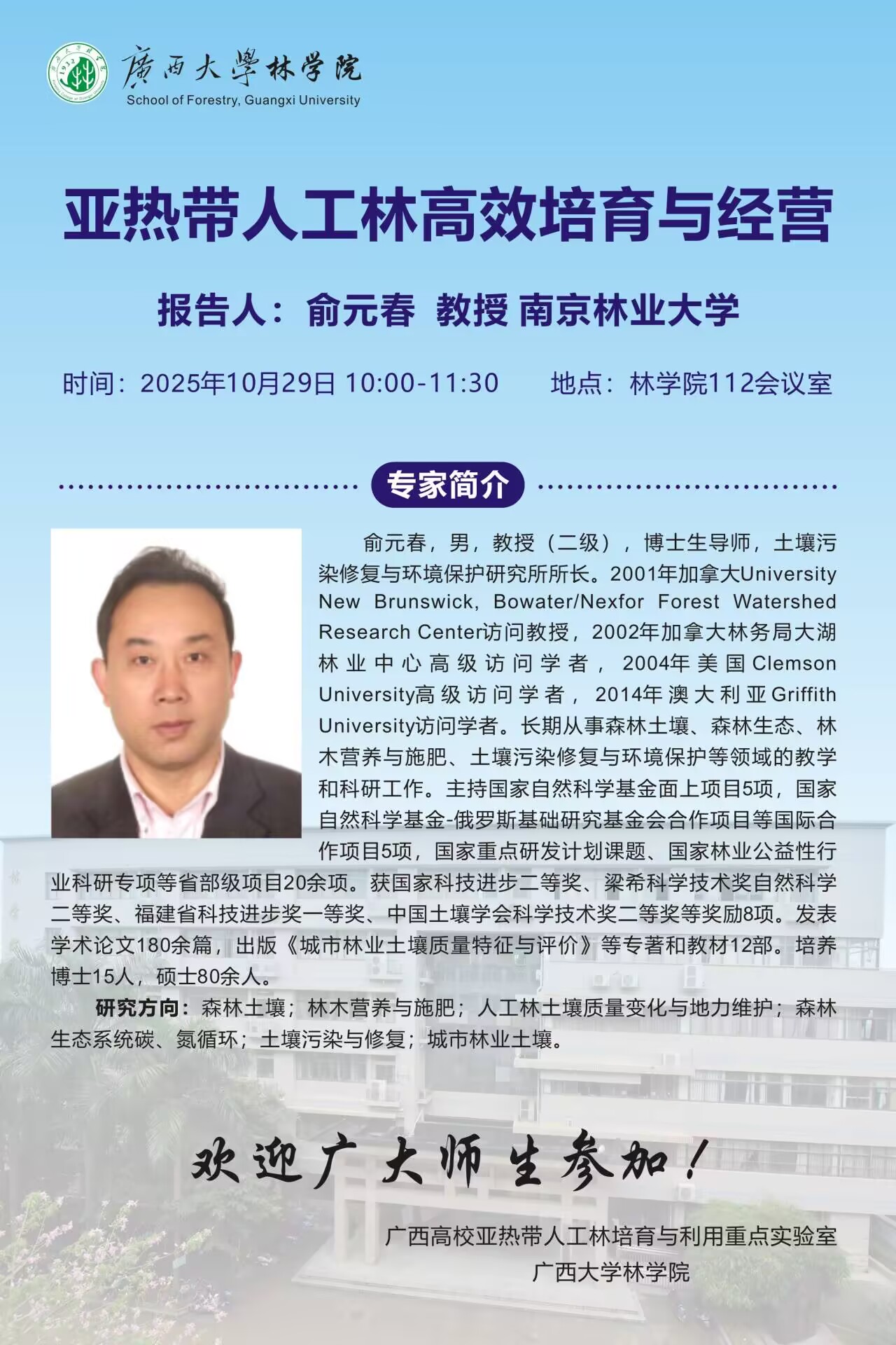学术报告:亚热带人工林高效培育与经营