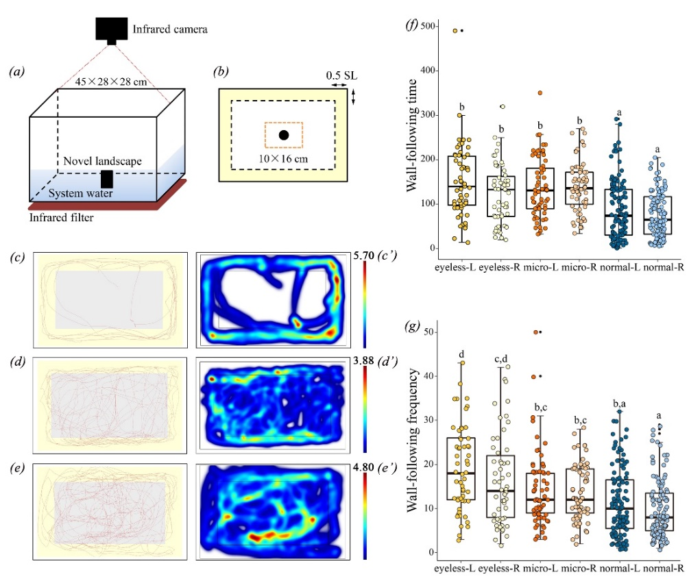不同种类的金线鲃表现出与眼睛形态相关的不同的贴壁行为结果。