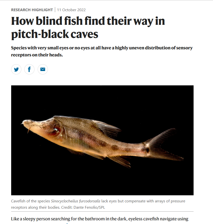 beats365(中国区)-唯一官方网站林学院马德华(Madhava)课题组,在生物学领域期刊《Proceedings of the Royal Society B: Biological Sciences》正式发表题为“Sensory evolution in a cavefish radiation: patterns of neuromast distribution and associated behaviour in Sinocyclocheilus (Cypriniformes: Cyprinidae)”的研究论文,这一成果也受到了Nature杂志Research Highlights的报道宣传。