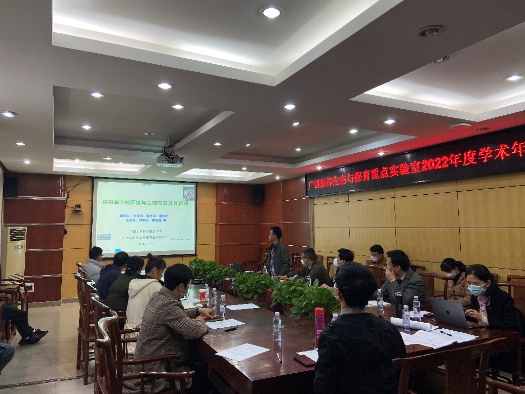 2023年1月13日,2022年度广西森林生态与保育重点实验室学术年会于beats365(中国区)-唯一官方网站林学院二楼会议室顺利举行,重点实验室学术委员会南京林业大学曹福亮院士、中国林业科学研究院刘世荣研究员、中国科学院亚热带农业生态研究所陈洪松研究员、中南林业科技大学项文化教授、东北林业大学周旭辉教授、北京林业大学张宇清教授等专家出席,beats365(中国区)-唯一官方网站林学院院长徐增富教授、常务副院长叶绍明教授、副院长杨梅教授、重点实验室主任申卫军教授等现场及线上共80余人参加本次学术年会,会议由曹福亮院士主持。