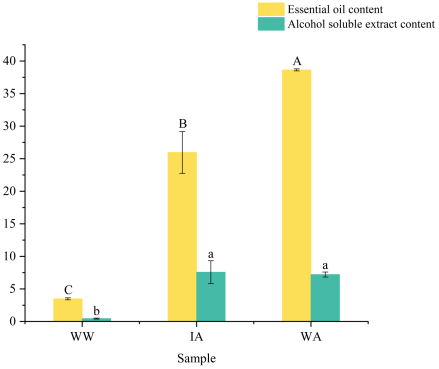 图3醇溶性提取物含量和精油含量