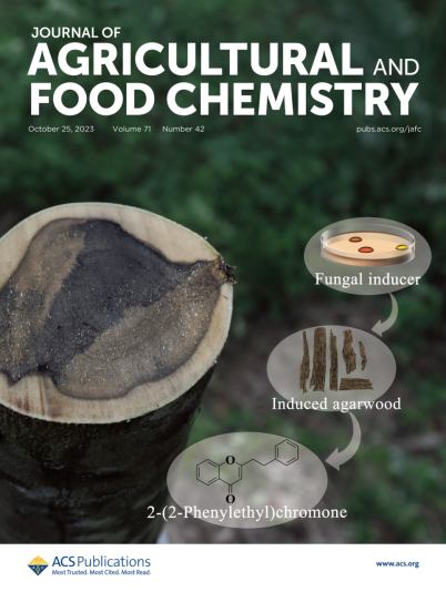 本研究为开发高效结香菌剂,提高沉香产量及品质促进人工沉香产业发展具有一定意义。相关研究成果以“Quality Similarity between Induced Agarwood by Fungus and Wild Agarwood”为题发表在《Journal of Agricultural and Food Chemistry》(农林科学1区TOP期刊,IF=6.1,封面文章)。我院林学硕士研究生黄满勤为论文的第一作者,符韵林教授为通讯作者,该研究得到国家自然科学基金面上项目(32171702)资助。