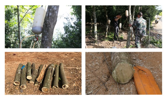 随后,将真菌结香剂接种到白木香中,一年后得到诱导沉香与无树脂白木(图2)。另外,从海南省市场购入野生沉香,与诱导沉香、无树脂白木进行质量比较。