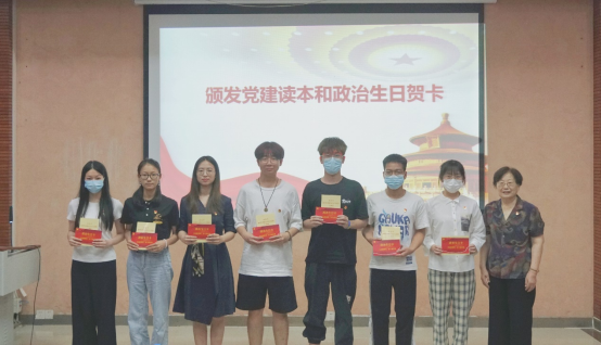 东退十三支部党员、原beats365(中国区)-唯一官方网站党委书记余瑾教授为本月政治生日党员代表颁发党建读本和政治生日贺卡,为党员们过了一个难忘而有意义的“政治生日”。