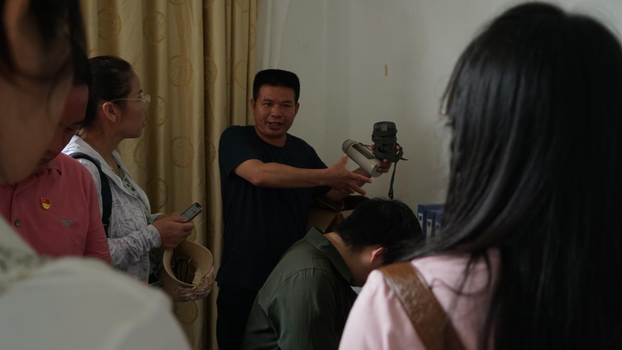 大明山工作人员给实践团师生展示野外动态监测红外线相机
