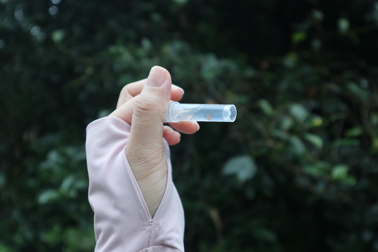 实践团从八角植株上捕获了害虫幼虫