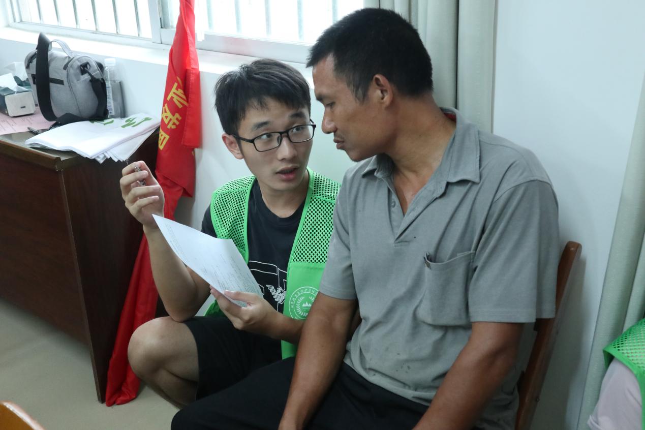实践团成员与腰马村八角种植户进行一对一的交流调研