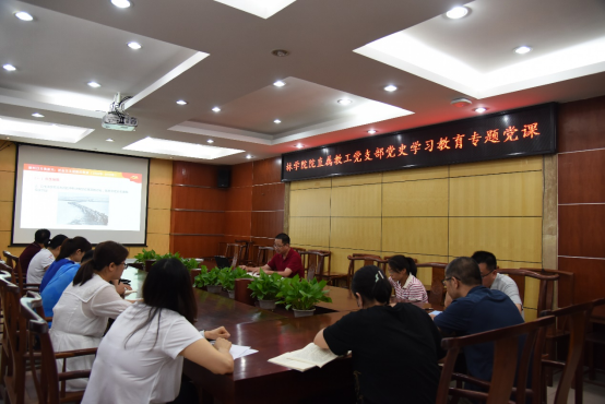 5月14日下午,我院直属教工党支部召开党史学习教育专题党课,我院党委书记覃宪儒以《社会主义道路的探索》为题,从重大历史事情的解读、正确认识社会主义改造的完成与社会主义制度的建立等方面,带领大家深刻领会我们党领导人民完成社会主义革命,确立社会主义基本制度,推进社会主义建设,实现中华民族由不断衰落到根本扭转命运、持续走向繁荣富强的伟大飞跃。覃书记强调全体党员要坚持党的领导、坚持实事求是、坚持走符合中国国情的发展道路,传承在社会主义建设时期形成的革命精神,树立正确的党史观,把历史当成最好的教科书,真正做到学党史、悟思想、办实事、开新局。