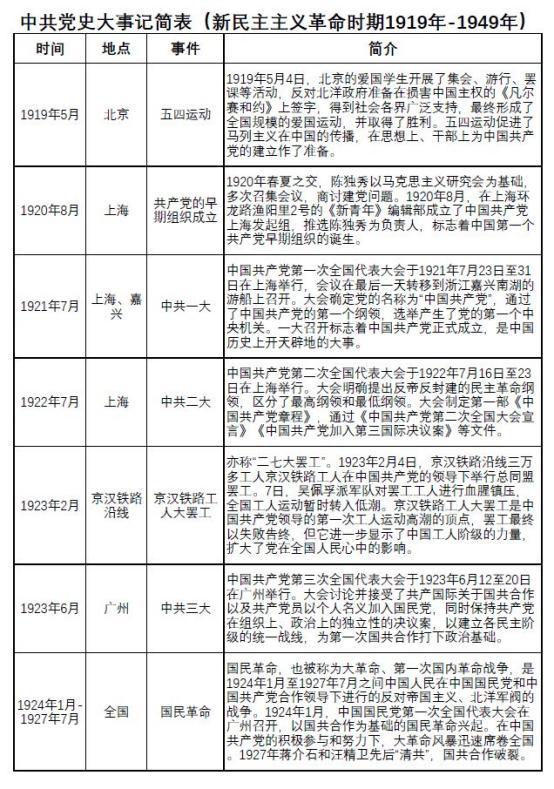 中共党史大事年表