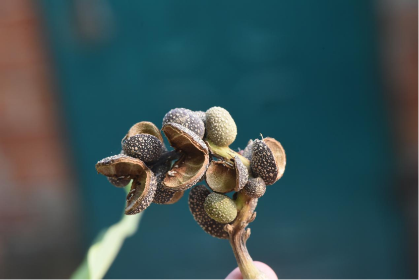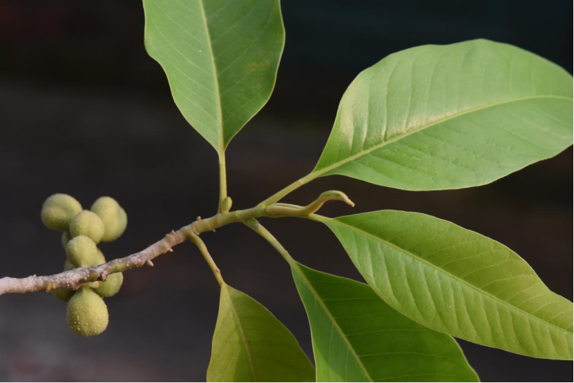 黄兰枝叶及果实外观,图中可以看出叶柄的托叶痕达叶柄中部以上